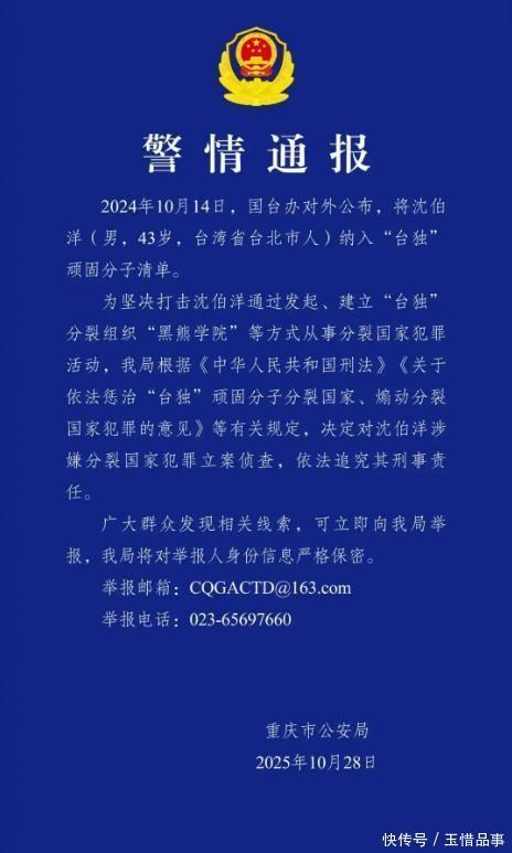 中美经贸关系暂得缓和、全球期盼合作回暖之际,以赖清德为首的民进党当局却逆势而为,大搞“台独”行径。2025年台湾光复80周年这一重要时刻被其蓄意淡化,赖清德还在“10·25”前后鼓吹谬论,尽显“台独”劣根。“台独”势力不断变招谋“独”,而中国大陆对“台独”展开了全方位处置,党的二十届四中全会强调“推进祖国统一大业”,全国人大设立台湾光复纪念日,规划闽台融合示范区,发布台岛高清卫星图,连发三条新时代“告台湾同胞书”,尤其从舆论谴责迈向司法追责新阶段,“黑熊学院”案便是标志性事件。 “黑熊学院”由沈伯洋于2023年创立,表面上打着“军事教育”“青年培训”的旗号,实则是一个专门从事“台独”分裂活动的组织。该组织长期接受外部势力资助,与美国、日本的反华势力勾结,组织台湾青年赴美国、日本接受城市巷战、信息战、渗透破坏等准军事训练,同时通过网络平台煽动针对大陆的暴力活动,妄图在台湾地区制造混乱,为“台独”分裂创造条件。2025年10月,大陆公安机关对沈伯洋正式刑事立案调查,并面向社会公开征集证据,这一行动具有重大的战略意义。 首先,它标志着大陆对“台独”的打击从“政治定性”转向“司法定罪”。此前,大陆对“台独”势力的打击主要通过国台办批判、白皮书宣示等方式,强调“台独”的危害性与分裂本质;而在“黑熊学院”案中,大陆司法机关直接依据《中华人民共和国刑法》《关于依法惩治“台独”顽固分子分裂国家、煽动分裂国家犯罪的意见》,对沈伯洋涉嫌分裂国家犯罪立案侦查,启动了具体的司法程序。这意味着“台独”不再仅仅是政治祸端,而是将面临法律的严厉制裁,让“台独”分子真正感受到法律的威慑力。